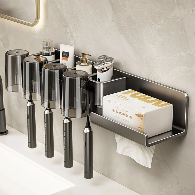 Vår tannbørsteholder i metall uten boring er laget av space-aluminium. Overflaten er finbehandlet av oss. Det er en betydelig forskjell i tekstur mellom aluminiumsprodukter og billige plastprodukter, og den praktiske levetiden er også forlenget. 2. Vitenskapelig partisjonering