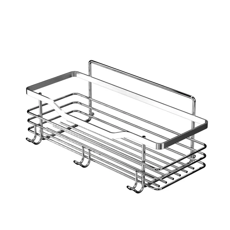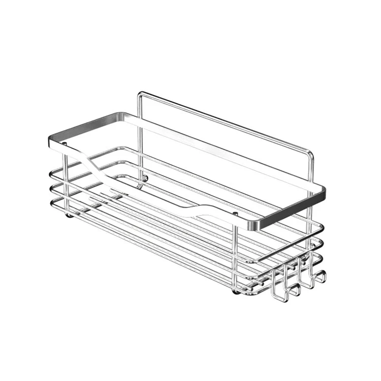 Vi brukte 201 rustfritt stål for å lage denne veggmonterte dusjkabinett i metall uten boring. Den tykke tråddiameteren sikrer dens pålitelige bæreevne. Lagavstanden kan justeres etter ønske, og antall kombinasjoner muliggjør også ubegrenset kapasitet. Det 8 cm høye rekkverket sikrer at gjenstander ikke faller. Den bakmonterte kuledesignen sikrer stabil oppheng uten å vippe.