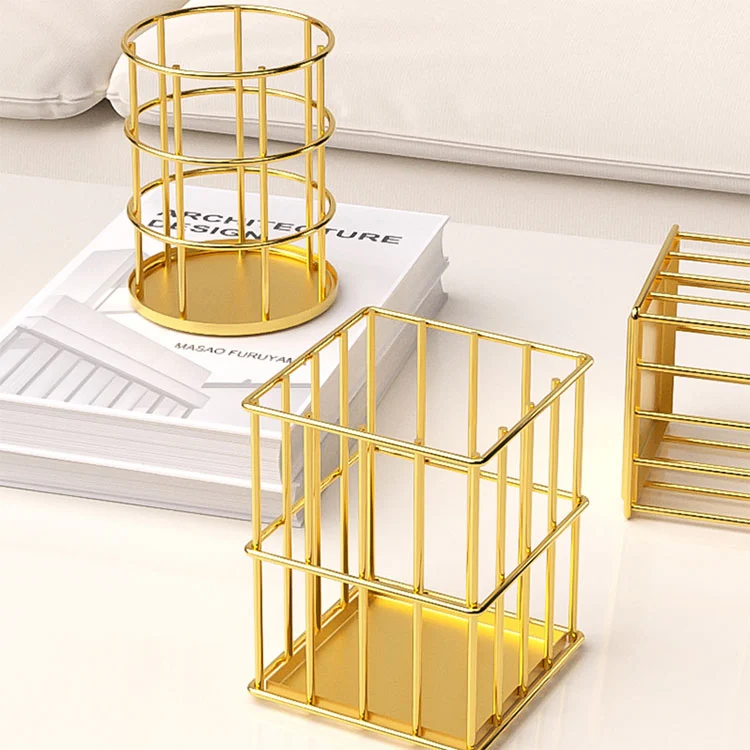 1. Vår holdbare pennholder i metall på kontorpulten har en strømlinjeformet design av sylindriske og firkantede former, som er enkel og utsøkt. Galvaniseringsprosessen gir den en elegant glans. Skrivebordsstilen er unik sammenlignet med andre. Pulverlakkeringsprosessen tilbyr flere fargealternativer, som møter behovene til forskjellige preferanser.