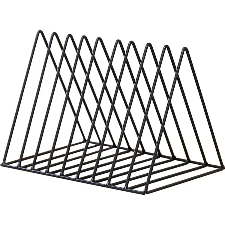 Bokstativet vårt i metall er laget av 3 mm tykt metallmateriale, som er solid og holdbart. Den har en vitenskapelig trekantet støttedesign med en helningsvinkel på 15°. Filene vises tydelig og omslagene kan sees med et øyeblikk.