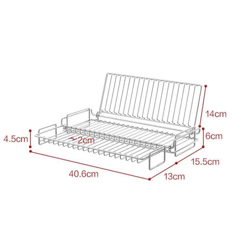 Den totale størrelsen er 40,6 cm, hovedkroppshøyden er 6 cm, vertikal kanthøyde er 14 cm, sideforlengelsesbredden er 15,5 cm, dreneringsgapet er 2 cm. Denne utformingen passer for de fleste husholdningsvasker med enkelt-/dobbeltspor og sikrer at vannet renner raskt gjennom, og unngår vannakkumulering.